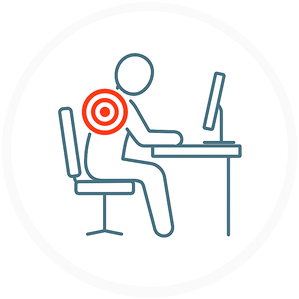 استفاده مکرر از موس و کیبورد و نشستن طولانیمدت باعث فشار مداوم روی عضلات شانه و کتف میشود. این فشار میتواند منجر به التهاب، سفتی عضلات و محدودیت حرکتی شود که عملکرد کارمند را تحت تأثیر قرار میدهد. بسیاری از کارمندان درد شانه و کتف را به عنوان مشکل اصلی تجربه میکنند و نیاز به رسیدگی فوری دارند.